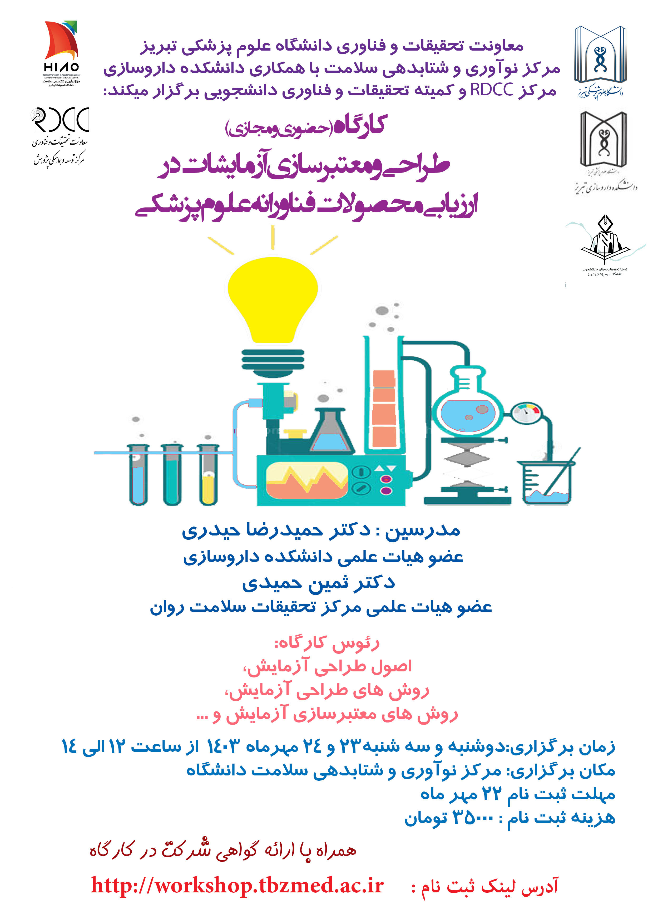 کارگاه آموزشی " طراحی و معتبرسازی آزمایشات در ارزیابی محصولات فناورانه علوم پزشکی "