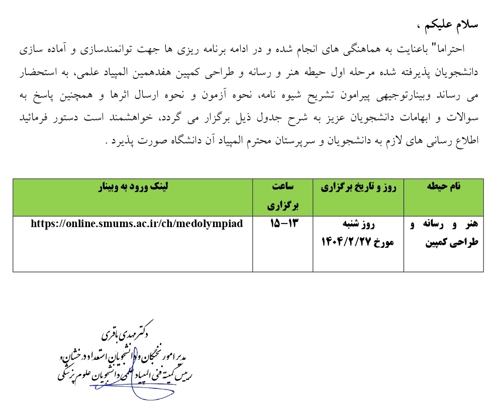 تاریخ انتشار : سهشنبه ۲۳ اردیبهشت ۱۴۰۴ تعداد بازدید کنندگان خبر : 135 زمان مطالعه : 1 دقیقه برگزاری وبینار کشوری حیطه هنر و رسانه و طراحی کمپین کد خبر : 47506 کپی کلمات کلیدی : دانشگاه علوم پزشکی تبریز دانشکده پیراپزشکی تبریز برگزاری وبینار کشوری حیطه هنر ارسال نظر ثبت