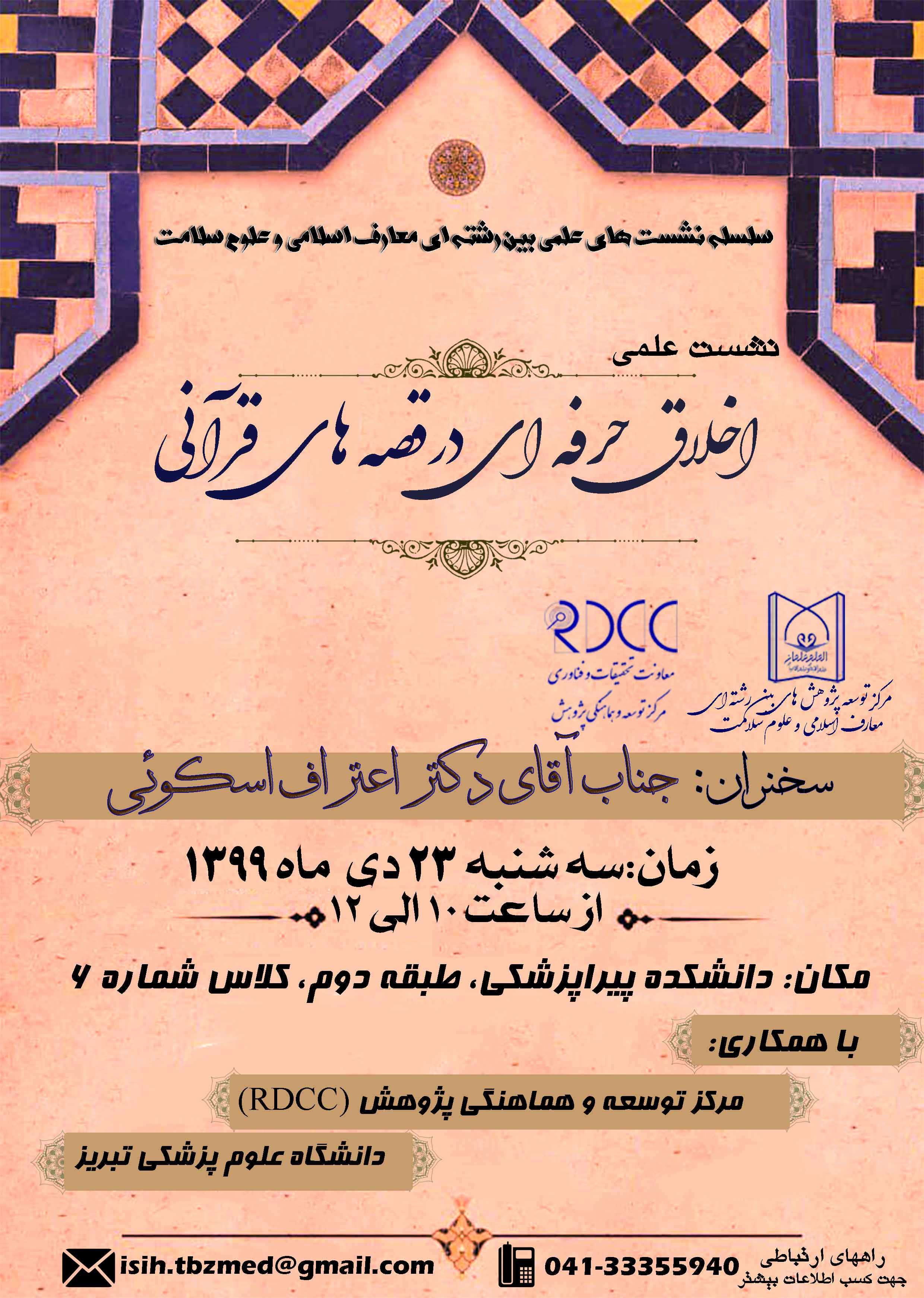 | اخلاق حرفه ای در قصه های قرآنی | آقای دکتر اعتراف اسکویی | 13 نفر | 23 دی 99 |